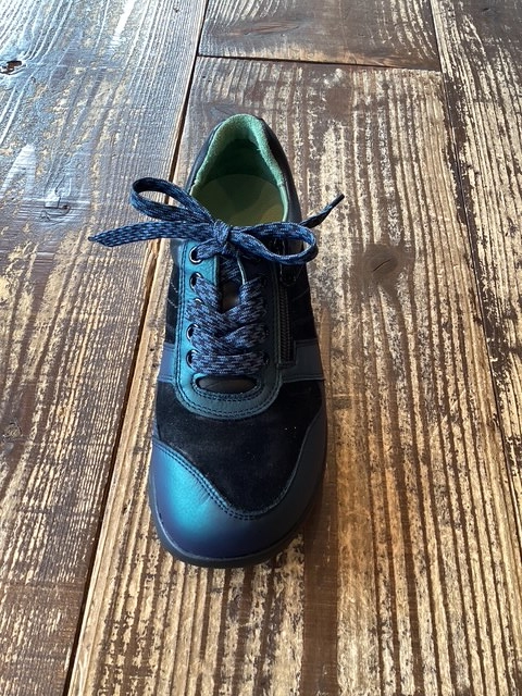 細かな幅対応が可能な、フィット感の高いモデルです。アッパーの一部には伸縮性の高いストレッチレザーを使用しています。